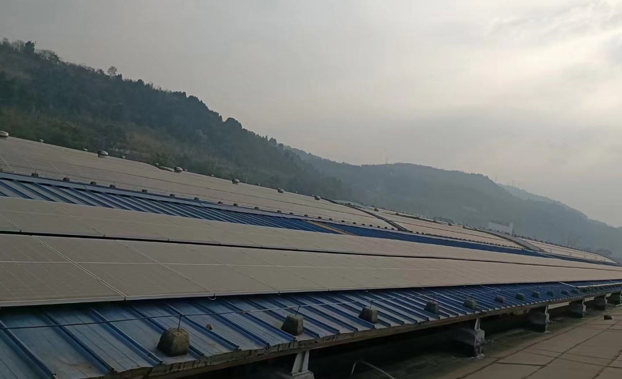 由我公司进行现场踏勘,设计的广安仓顶阳光光伏电站项目顺利完工,本项目采用1342片320Wp单晶硅光伏组件,装机容量为429.44KWp。安装位置位于粮仓5、6栋屋顶。